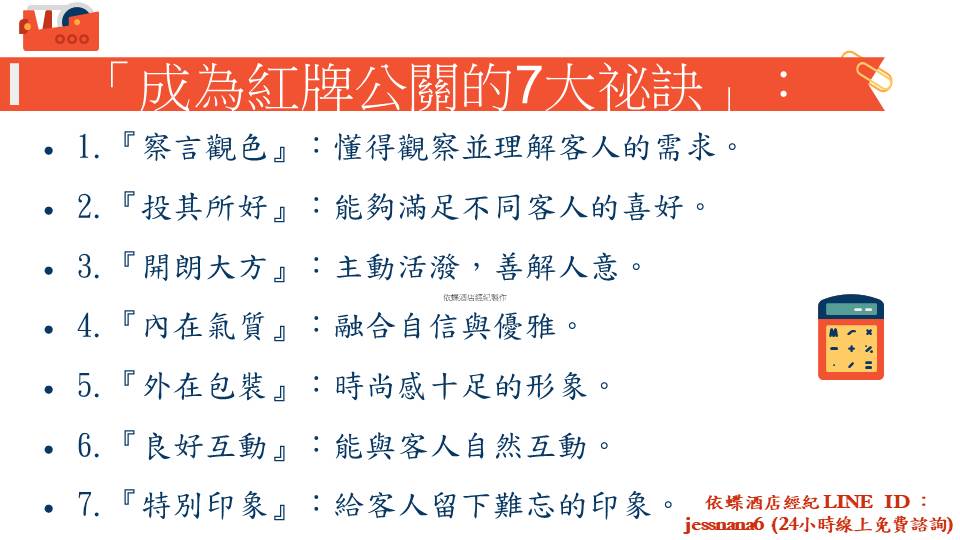 酒店紅牌的特色是「主動活潑、善解人意、大方熱情、情商穩定。」等等