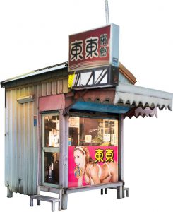 빈랑 나무 아가씨:화려한 네온 불빛으로 장식 된 가게와 에로틱 한 옷을 입은 빈랑 나무 아가씨.